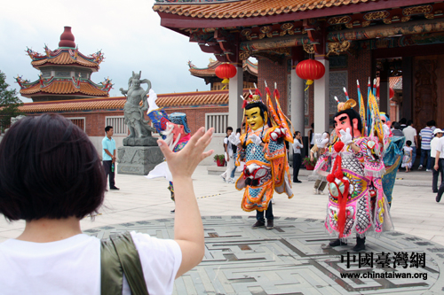 大典前后,還有近年來爆紅的“電音三太子”助興表演,濃濃的臺灣氣息吸引了許多游人的目光。更有臺胞忍不住與“三太子”共舞,笑稱“實在是太親切了!”