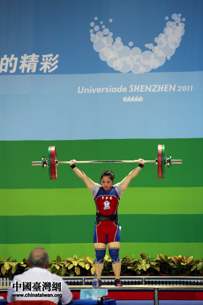 中國臺灣網(wǎng)8月16日深圳消息 在今天下午結(jié)束的深圳大運會女子舉重63公斤級決賽上,中華臺北隊小將何筱珺以211公斤總成績獲得金牌,這是中華臺北隊在本屆大運會上的首枚金牌,也是中華臺北隊舉重賽場的第三塊獎牌。(中國臺灣網(wǎng) 劉海偉)