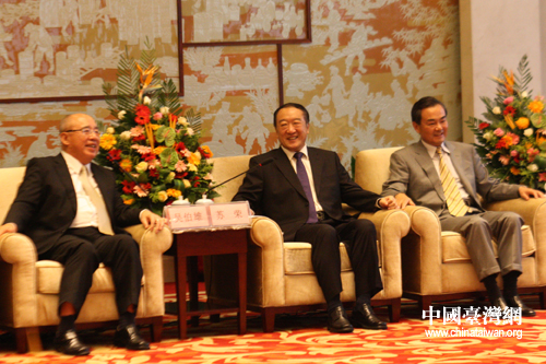 會見現場。圖中從右至左依次為鹿心社、王毅、蘇榮、吳伯雄、蔣孝嚴。(中國臺灣網 邢同林 攝)