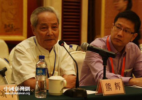 打響武昌第一槍的熊秉坤之子熊輝先生代表辛亥后裔在座談會上作了慷慨激昂的發言。(中國臺灣網 李丹 攝)