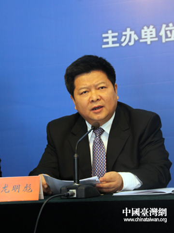 國臺辦主任助理龍明彪當選委員會主任后發表講話。(中國臺灣網 王偉 攝)