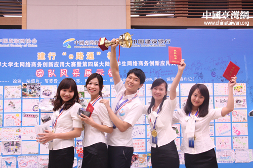 中國臺灣網9月20日北京消息 建行“e路通”杯首屆海峽兩岸大學生網絡商務創(chuàng)新應用大賽兩岸總決賽頒獎典禮今日在北京舉行。來自兩岸23所高校共23支隊伍獲獎,其中4支臺灣高校隊伍的成績名列前茅。來自西安郵電學院的“隨風E起沖”團隊憑借出色的表現(xiàn),繼奪取大陸賽區(qū)首魁后,越戰(zhàn)越勇,再奪兩岸賽區(qū)冠軍。