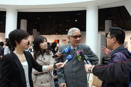 臺灣金寶山集團總裁曹日章在月湖美術(shù)館接受采訪(資料圖片)