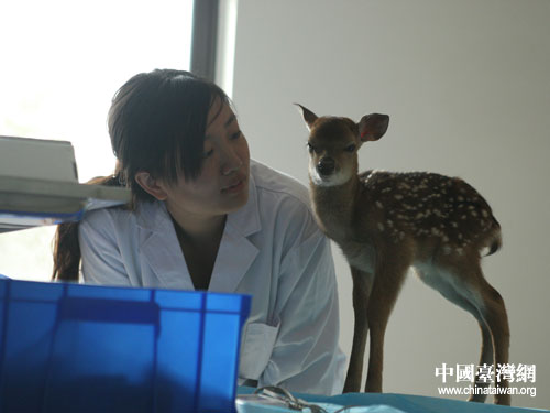 中國臺灣網10月27日威海消息 2011年10月26日6時,臺灣贈送大陸梅花鹿“點點”順利生產一只雌性小鹿。目前,“母女”平安,狀態良好。