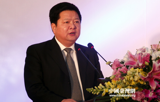 國臺辦主任助理、中國互聯網協會海峽兩岸互聯網交流委員會主任委員龍明彪在開幕式上致辭。(中國臺灣網 趙輝 攝)