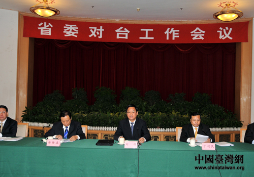 2011年3月28日,山東省委對臺工作會議召開,省委副書記、省政協主席劉偉出席并作重要講話,副省長才利民主持。(圖片來源:山東省臺辦)