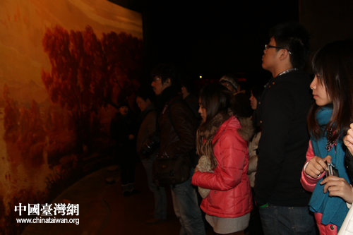 兩岸大學(xué)生們認(rèn)真觀看新石器時期河姆渡人的生活還原圖。(中國臺灣網(wǎng) 郭瑩瑩 攝)