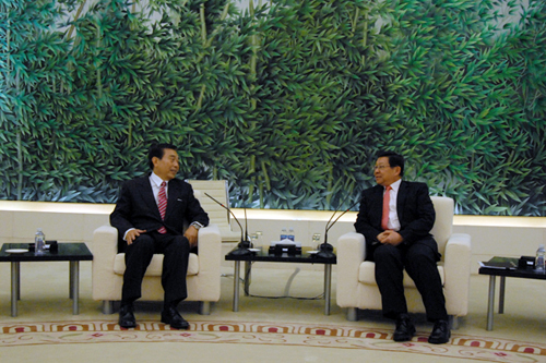 日前,商務部部長陳德銘會見臺北世貿中心董事長王志剛一行,雙方就兩岸產業合作、推動大陸赴臺投資和采購、ECFA后續協商等事宜深入交換了意見。圖片來源:商務部網站