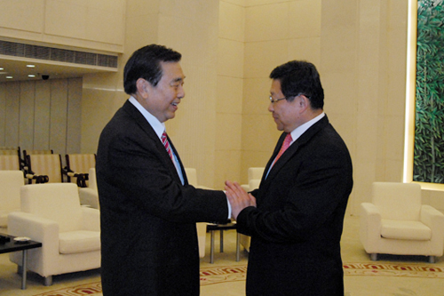 中國臺灣網2月24日消息 據商務部網站消息,日前,商務部部長陳德銘會見臺北世貿中心董事長王志剛一行,雙方就兩岸產業合作、推動大陸赴臺投資和采購、ECFA后續協商等事宜深入交換了意見。(中國臺灣網 王偉)