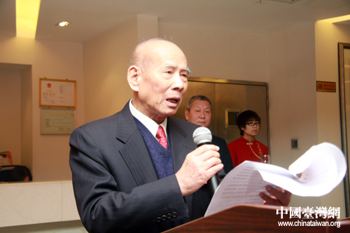 3月8日,黃埔軍校同學會在京舉辦兩會代表、委員聯誼招待會,黃埔軍校同學會會長林上元在招待會上致辭。(中國臺灣網 王偉 攝)