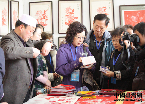 兩岸三地記者聯合采訪團3月25日上午參訪開封朱仙鎮回族民間剪紙藝術展(中國臺灣網記者 王文英 攝)