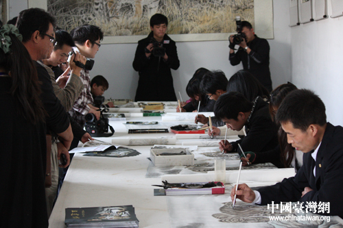 兩岸三地記者聯合采訪團3月25日下午參訪河南商丘民權縣王公莊農民畫虎(中國臺灣網記者 王文英 攝)
