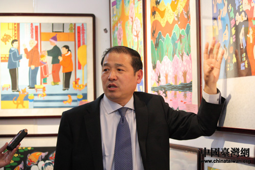 兩岸三地記者聯合采訪團3月26日下午參訪漯河市舞陽農民畫(中國臺灣網記者 王文英 攝)