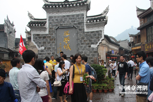 中國臺灣網5月19日鳳凰消息 今天上午,第九屆海峽兩岸媒體來湘聯合采訪團一行,走訪了湘西州鳳凰縣,參觀了鳳凰古城、沈從文故居、楊家祠堂、熊稀齡故居,并且沱江泛舟,近距離感受鳳凰古城魅力。(記者 張曉靜)