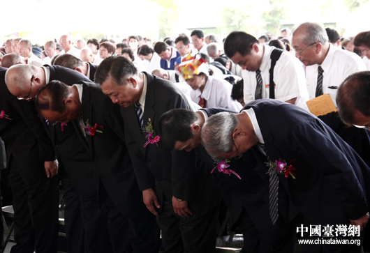 現場嘉賓向孔子像鞠躬敬禮(中國臺灣網 邢同林 攝)