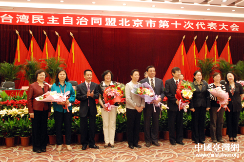 2012年6月5日,臺盟北京市第十次代表大會閉幕式上,新一屆領導班子成員與代表見面。(中國臺灣網 楊麗 攝)