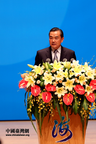 中臺辦、國臺辦主任王毅在第四屆海峽論壇大會上宣布,大陸新增福建永定客家文化園、山西運城解州關帝廟、河南固始根親博物館、四川成都大熊貓繁育研究基地、安徽合肥劉銘傳故居、浙江象山縣等6個兩岸交流基地。(中國臺灣網 王偉 攝)