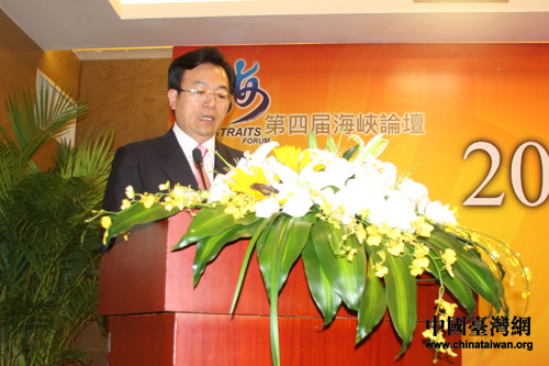 中國僑聯副主席李卓彬在四屆海峽論壇·兩岸僑聯和平發展論壇上致辭。(中國臺灣網 張潔 攝)