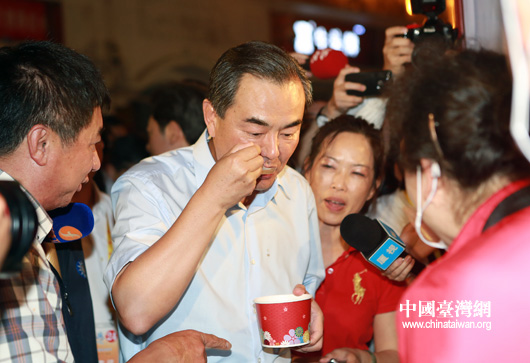 6月17日晚,中臺辦、國臺辦主任王毅走進廈門中山路逛臺灣特色廟會,形容自己的心情“像到過臺灣一樣”。(中國臺灣網(wǎng) 田云鵬 攝)