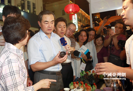 中國臺灣網(wǎng)6月18日廈門消息 中共中央臺辦、國務院臺辦主任王毅17日晚走進廈門市中山路,逛臺灣特色廟會,品原味道地小吃,看文化創(chuàng)意產(chǎn)品,與攤主拉家常話發(fā)展。