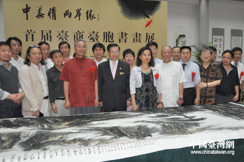 中國臺(tái)灣網(wǎng)6月23日上海消息“我們要將這幅一丈二尺的山水國畫作品特別獻(xiàn)給‘中華情-兩岸緣’首屆臺(tái)商臺(tái)胞書畫展活動(dòng)組組委會(huì),這是我們海峽兩岸書畫家攜手合作的成果,也是兩岸書畫藝術(shù)交流的最新成果,我們一定要把它載入史冊!”