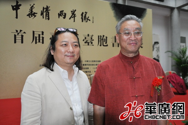 巫永堅在畫展開幕儀式上與海協會副會長張銘清合影(玉龍攝)