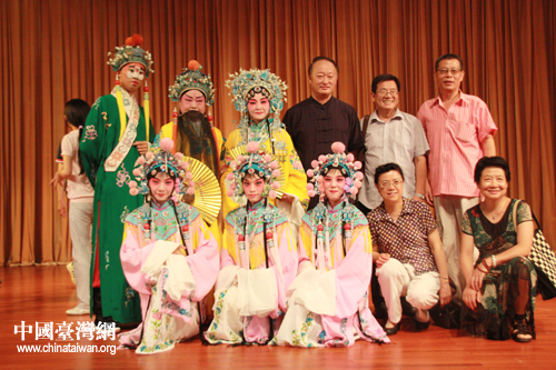 7月8日,由北京師范大學以雅昆曲社、臺灣師范大學昆曲研究社聯合宋慶齡基金會舉辦的“月圓兩岸明——兩岸昆曲交流匯演”在北京師范大學舉行。圖為演出結束,來自臺灣的老師和學生與現場觀眾合影留念。(中國臺灣網 孟雅詩 攝)