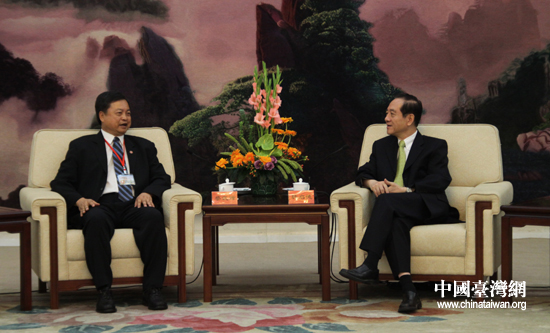 全國人大常委會副委員長、中國和平統(tǒng)一促進(jìn)會副會長韓啟德在會見臺灣“一國兩制”研究協(xié)會訪問團(tuán)一行。(中國臺灣網(wǎng) 趙輝 攝)