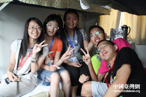 漫長的旅程絲毫未減弱學生們彼此交流的興致。在火車上,京臺兩地的學生自發地組織起來,相互溝通,彼此交流,分享快樂,傳遞友誼。他們把各自準備好的寫有興趣愛好的小卡片彼此交換,相互介紹北京與臺灣地道的美食、好玩的地方、新奇的故事,彼此贈送了各自從家鄉帶來的紀念品。很快,陌生拘謹的氛圍便被一陣陣歡聲笑語沖散,車廂里處處洋溢著輕松、歡快的氣氛,清脆爽朗的笑聲和悅耳動聽的歌聲不絕于耳。很多同學當場留下了聯系方式,約定有機會相聚北京或臺灣,再續同學情誼。