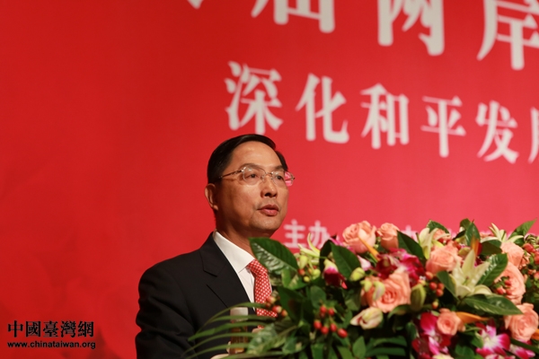 圖:中共中央臺辦特邀嘉賓蔣耀平在第八屆兩岸經貿文化論壇上作以《四年來兩岸經濟關系的回顧及對未來的展望》為題的主題演講。(中國臺灣網 于斯文 攝)