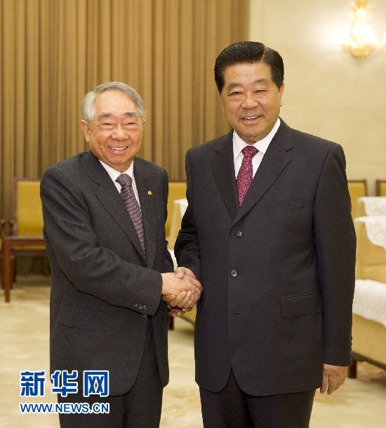 7月31日,中共中央政治局常委、全國政協主席賈慶林在北京會見臺灣長榮集團總裁張榮發。 新華社記者 黃敬文 攝