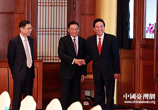 8月9日上午,兩岸兩會領導人第八次會談在臺北圓山飯店舉行。圖為海協會會長陳云林與臺灣海基會董事長江丙坤在會談前握手致意。(中國臺灣網 田云鵬 攝)
