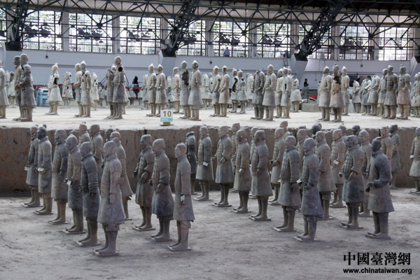 秦始皇陵兵馬俑位于距西安市30多千米的驪山之北,1974年被當地農民發掘。秦始皇兵馬俑博物館是世界最大的地下軍事博物館,吸引了全世界人的眼光,目前已挖掘出3個俑坑。(中國臺灣網記者 芮益芳)