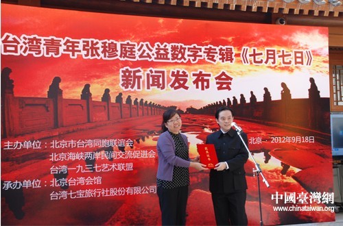中國臺(tái)灣網(wǎng)9月18日北京消息 為紀(jì)念兩岸抗戰(zhàn)歷史,幫助兩岸慰安婦安享晚年,北京市臺(tái)灣同胞聯(lián)誼會(huì)、北京海峽兩岸民間交流促進(jìn)會(huì)、臺(tái)灣一九三七藝術(shù)聯(lián)盟18日上午在北京臺(tái)灣會(huì)館舉辦“紀(jì)念抗戰(zhàn)、毋忘和平——臺(tái)灣青年張穆庭公益數(shù)字專輯《七月七日》新聞發(fā)布會(huì)”。