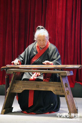 海峽兩岸傳統文化藝術雅集5日下午在北京前門的臺灣會館舉行。中國琴會副會長、秘書長楊青獻藝。(中國臺灣網 楊麗 攝)