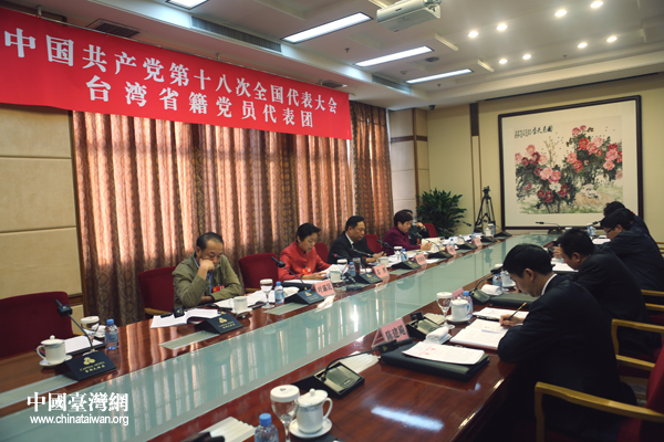 中國共產黨第十八次全國代表大會臺灣省籍黨員代表團在討論胡錦濤總書記所作的報告。(中國臺灣網 王偉 攝)