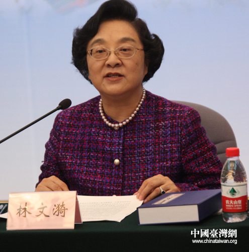 全國政協(xié)副主席、臺盟中央主席林文漪在紀(jì)念臺盟成立65周年座談會上發(fā)表講話。(中國臺灣網(wǎng) 王怡然 攝)