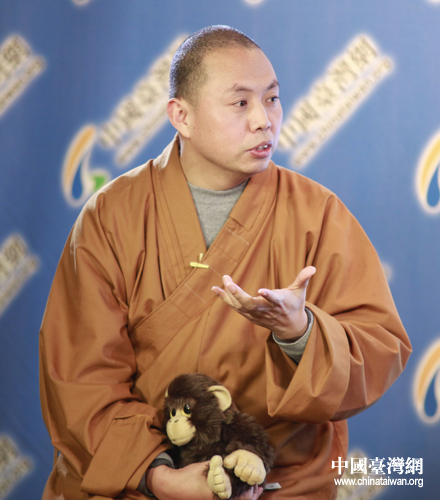 延參法師攜其新書(shū)做客中國(guó)臺(tái)灣網(wǎng),法師向網(wǎng)友詳細(xì)介紹了他的慈善理念。(中國(guó)臺(tái)灣網(wǎng) 王偉 攝)
