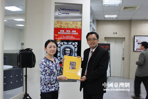 《兩岸關系》雜志社向正修科技大學贈送禮物。(中國臺灣網發)