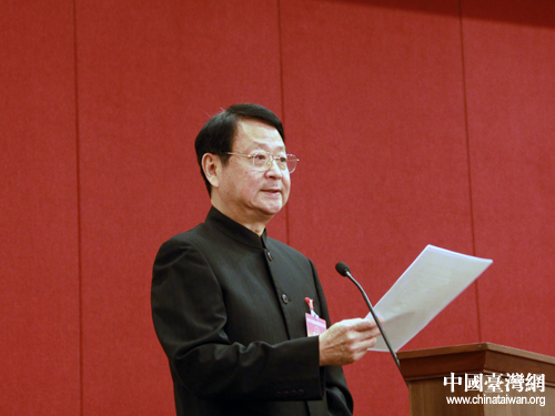 汪毅夫在第九次全國臺灣同胞代表會議上當選為全國臺聯會長。20日上午,汪毅夫在閉幕會上講話。(中國臺灣網 楊麗 攝)