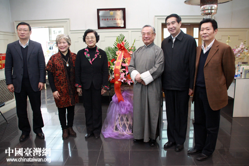 全國(guó)政協(xié)副主席、臺(tái)盟中央主席林文漪,臺(tái)盟中央副主席黃志賢,秘書(shū)長(zhǎng)張寧,“育青食品”董事長(zhǎng)黃梅邨等合影。(中國(guó)臺(tái)灣網(wǎng) 王怡然 攝)