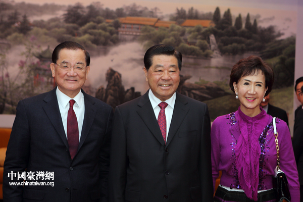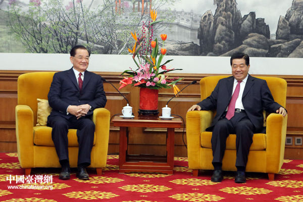 2月26日下午,全國政協主席賈慶林在北京釣魚臺國賓館會見中國國民黨榮譽主席連戰一行。(中國臺灣網 陳佳慧 攝)