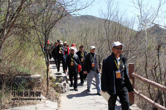 4月10日上午,由近70位臺灣統派人士和退役將領組成的參訪團一行來到焦作市修武縣,參觀世界地質公園云臺山。(中國臺灣網 李丹 攝)