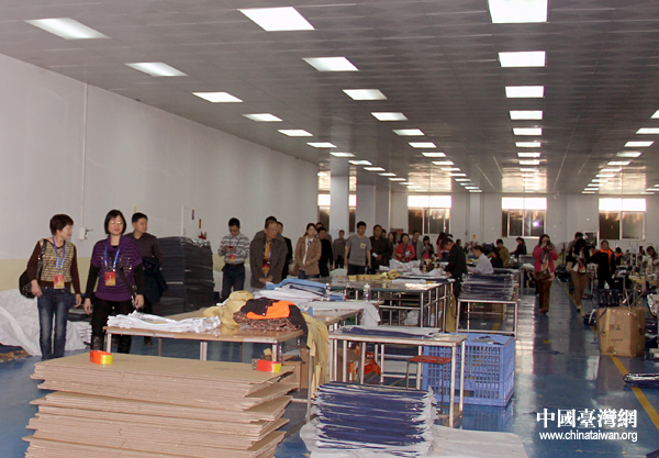 由來自臺灣和大陸的十多家媒體組成的參訪團一行走進河南信陽市唐河臺商投資園區,實地參觀考察了多家臺企在中原地區投資發展的情況。圖為記者們參觀臺企生產車間。(中國臺灣網 普燕 攝)