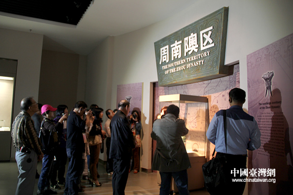 4月14日,由兩岸媒體記者組成的參訪團一行到河南信陽市參觀采訪。圖為參訪團參觀信陽市博物館。(中國臺灣網(wǎng) 普燕攝)