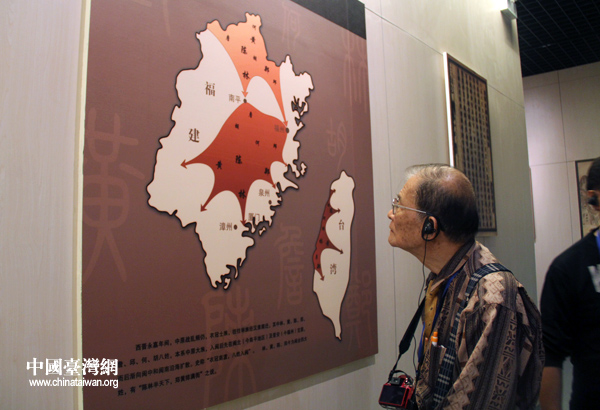 來自臺灣的黃老先生在觀看豫臺姓氏關(guān)聯(lián)圖。(中國臺灣網(wǎng) 普燕攝)