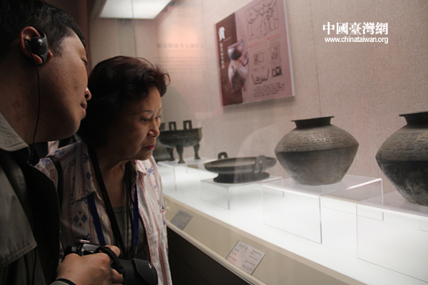 記者們在仔細參觀信陽博物館內(nèi)珍貴文物。(中國臺灣網(wǎng) 普燕攝)