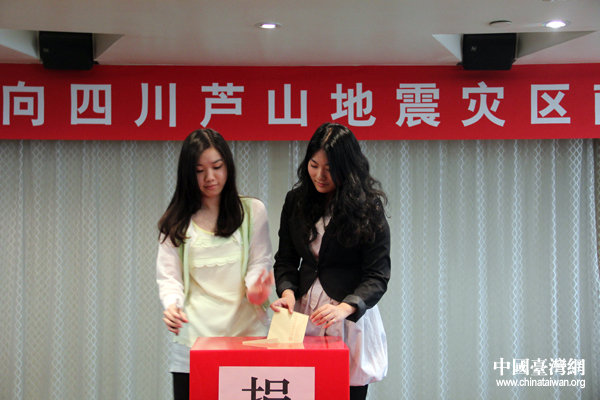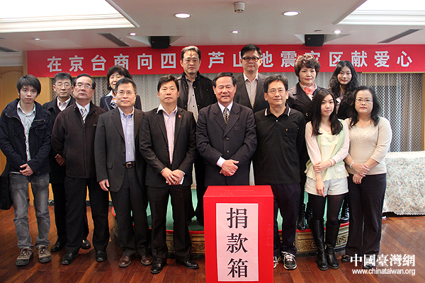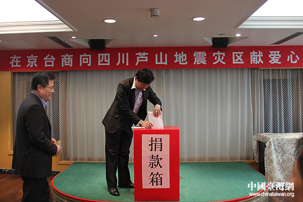 北京市臺資企業協會23日上午舉行獻愛心活動,向四川蘆山地震災區的同胞捐贈救災款項。(中國臺灣網 楊麗 攝)