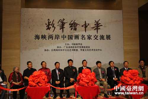 中國臺灣網5月4日北京消息 4日上午,以“同研和諧筆墨,共繪錦繡中華”為主題的“彩筆繪中華”海峽兩岸中國畫名家交流展在中國美術館開幕。
