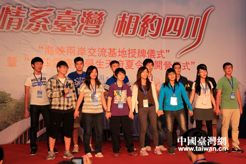 臺灣學生天府夏令營自2010年暑期以來已連續舉辦三屆,累計有300多名臺灣師生來川參加活動,此活動已成為川臺兩地青少年學生交流的品牌。此次第四屆夏令營主題為“川臺學生手牽手”,在8月6日至13日的8天時間里,川臺兩地學生將一對一結伴,參觀大熊貓基地,在省博物院聆聽四川歷史文化講座,參觀游覽九寨溝、杜甫草堂、武侯祠、成都蜀錦織繡博物館、三星堆遺址等文化旅游景點。(中國臺灣網記者 馬迪)